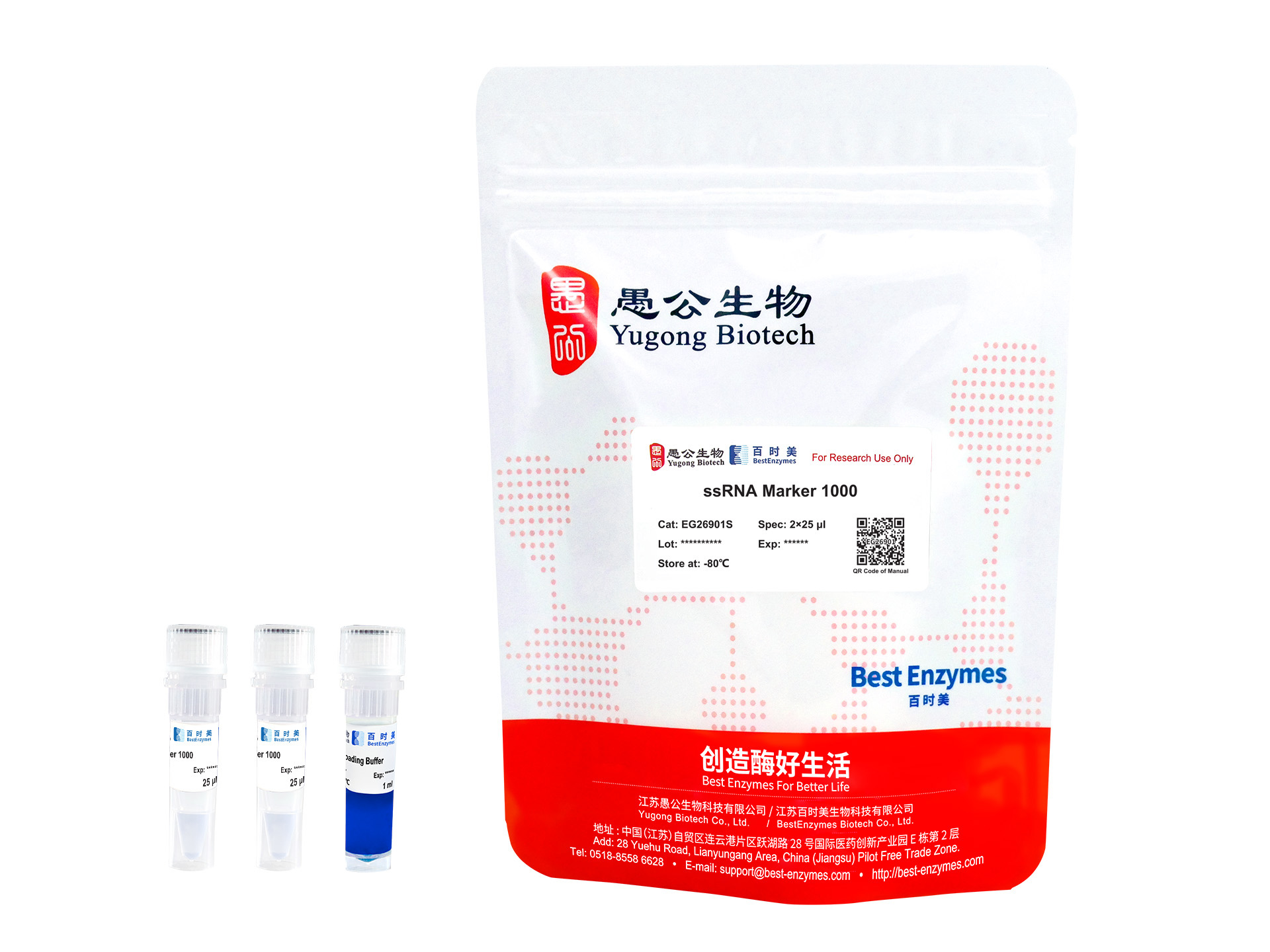 本产品由体外转录得到的6条高纯度单链RNA组成,长度分别为100、200、300、400、600、1000 nt,每微升产品中 RNA 量约为500 ng,适用于RNA常规凝胶电泳。