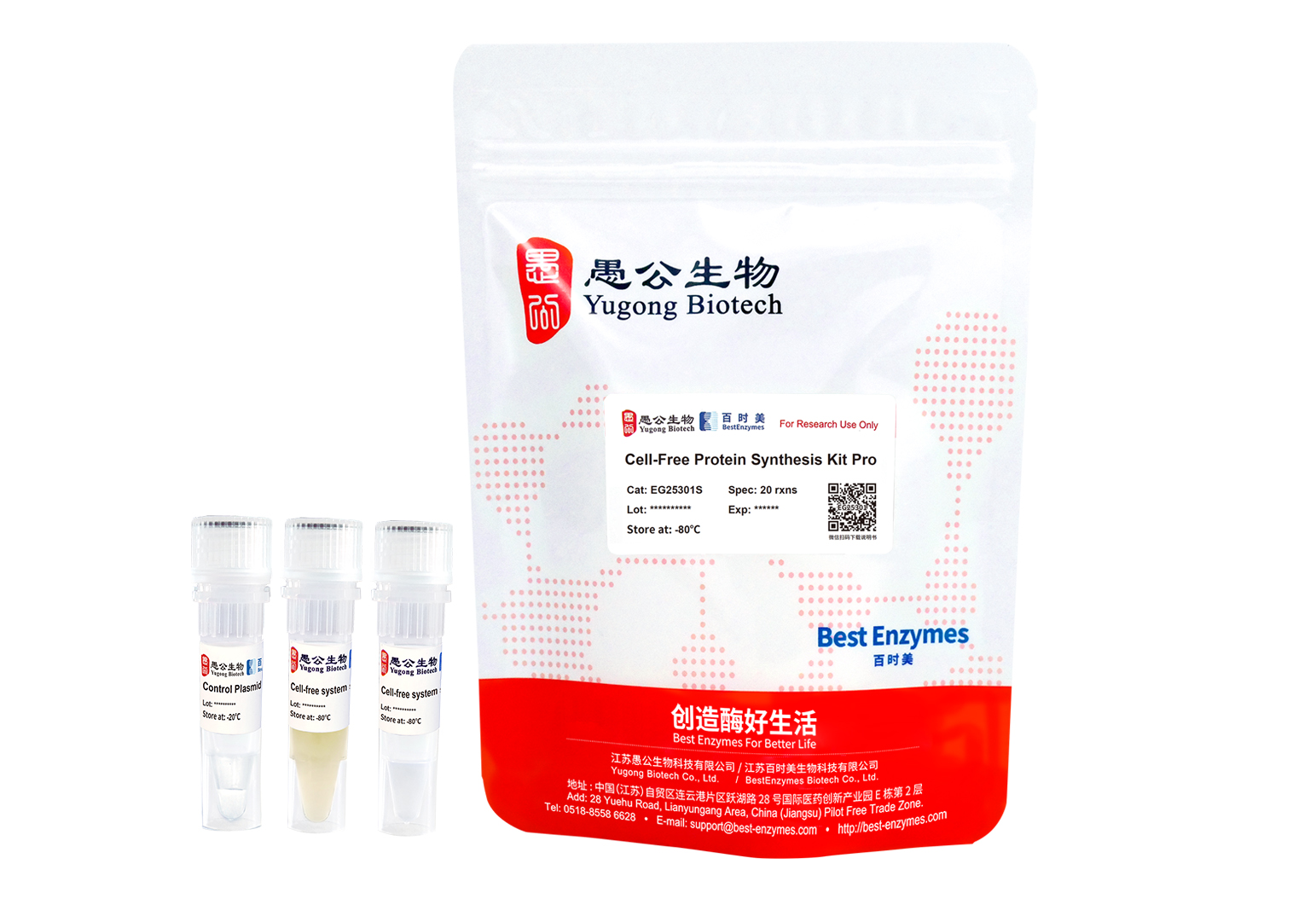 无细胞蛋白合成试剂盒(Cell-Free Protein Synthesis Kit)是一款基于大肠杆菌细胞裂解液进行体外蛋白质合成的产品。该产品利用细胞裂解液中的核糖体、翻译因子、酶等活性物质,同时补加能量、核苷酸、氨基酸、无机盐等,在体外重构转录-翻译体系。以DNA或RNA为模板,表达出蛋白质。无细胞蛋白表达是一种不依赖于活菌,能够快速、灵活地大量表达蛋白质,和传统的重组表达体系相比有众多的优势: