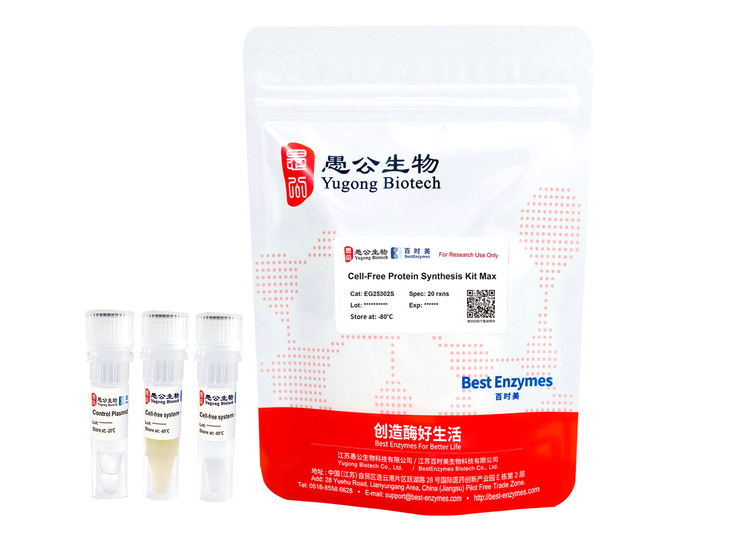 干冰运输。用户开封后,将无细胞蛋白表达反应组分置于-80℃储存。